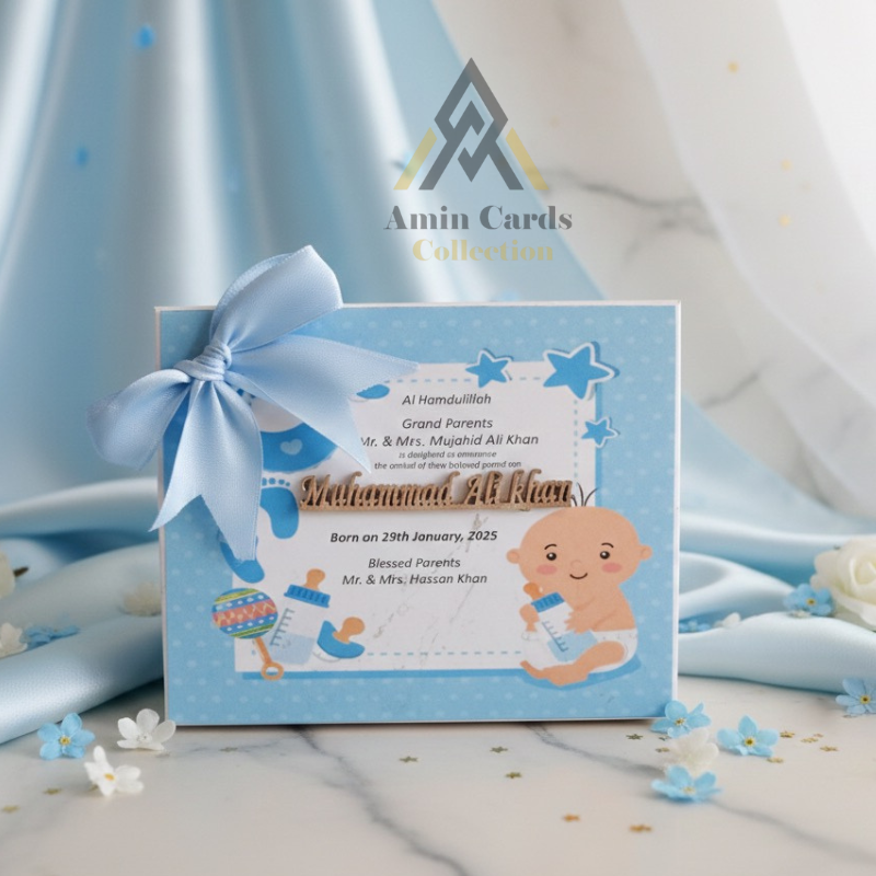 Formal Text: The inner lid contains the formal invitation text, host names (e.g., Dr. Hafiz Adnan Ashraf), and key religious affirmations.