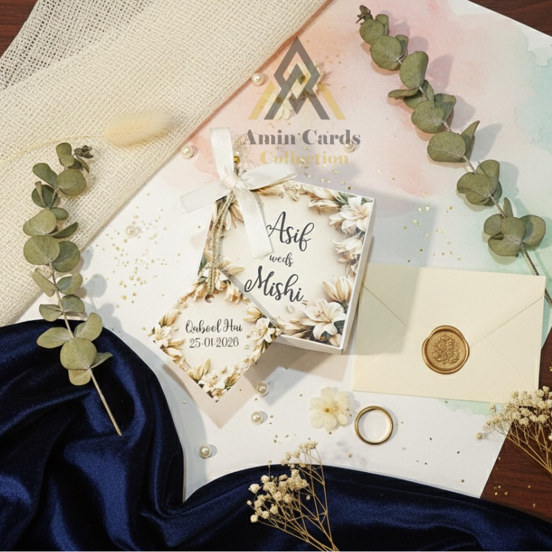 Personalized Box Printing with the couple’s names (e.g., Asif weds Mishi).