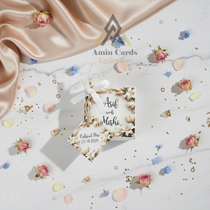 Attached Personalized Tag—Perfect for mentioning the date or event detail (like “Qabool Hai”).